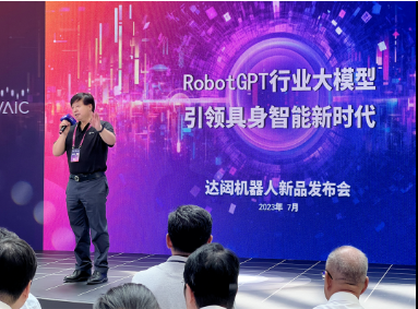 2023年7月7日達闥機器人在世界人工智能大會上舉辦了「RobotGPT行業(yè)大模型,引領(lǐng)具身智能新時代」新品發(fā)佈會。在此次發(fā)佈會上,達闥基於多年自然語言處理、機器視覺等技術(shù)的積累和垂直領(lǐng)域業(yè)務(wù)經(jīng)驗,發(fā)佈了機器人領(lǐng)域的多模態(tài)人工智能大模型——RobotGPT,包含RobotGPT 1.0服務(wù)平臺和RobotGPT 1.0一體機,為各行各業(yè)提供創(chuàng)新引擎,迎接通用人工智能(AGI)時代。