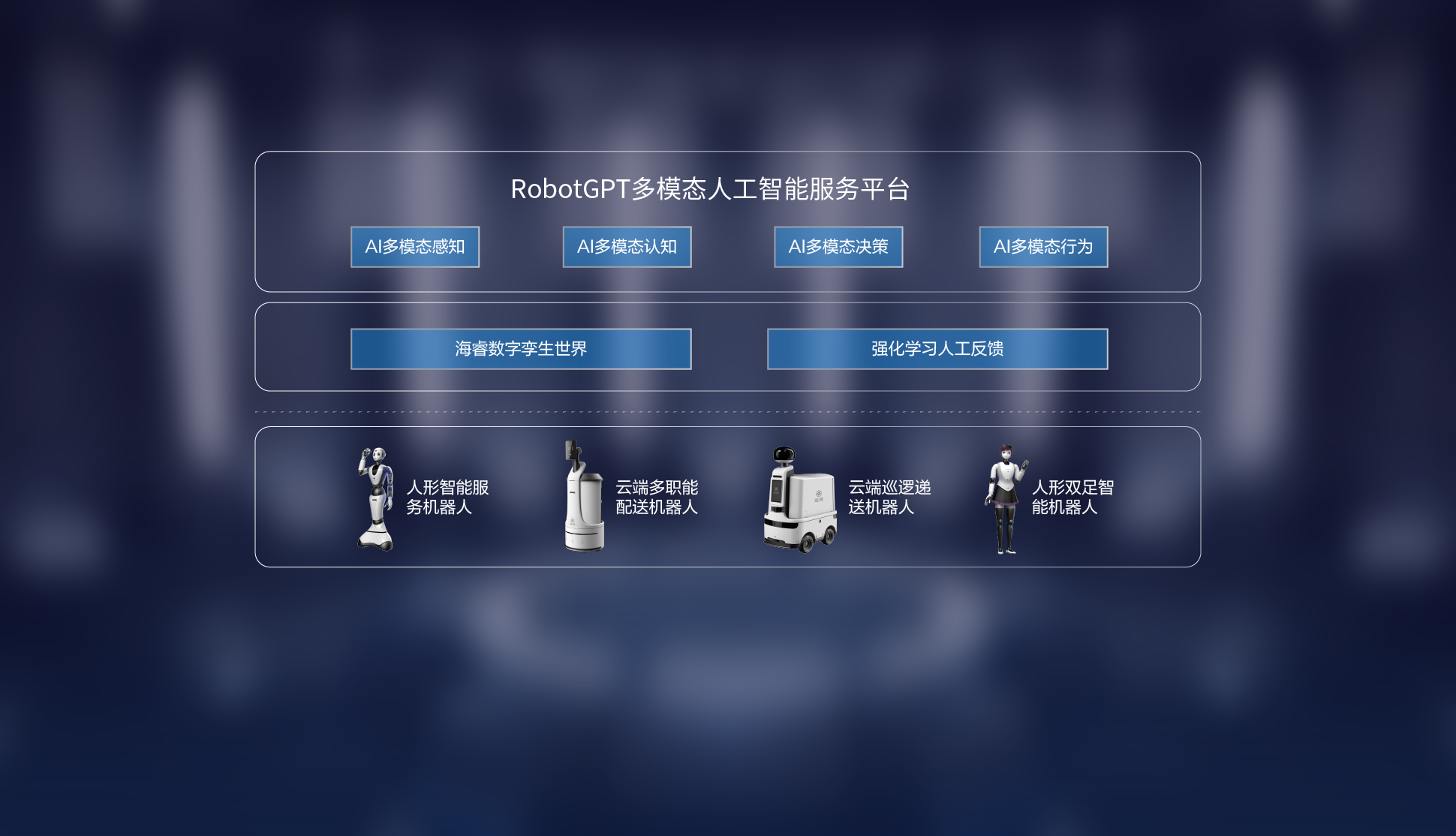 融合人工增強(qiáng)的智能視覺、智能語(yǔ)音、智能運(yùn)動(dòng)等人工智能能力,基于具備3D語(yǔ)義的數(shù)字孿生世界,為機(jī)器人運(yùn)營(yíng)提供各種智能服務(wù)