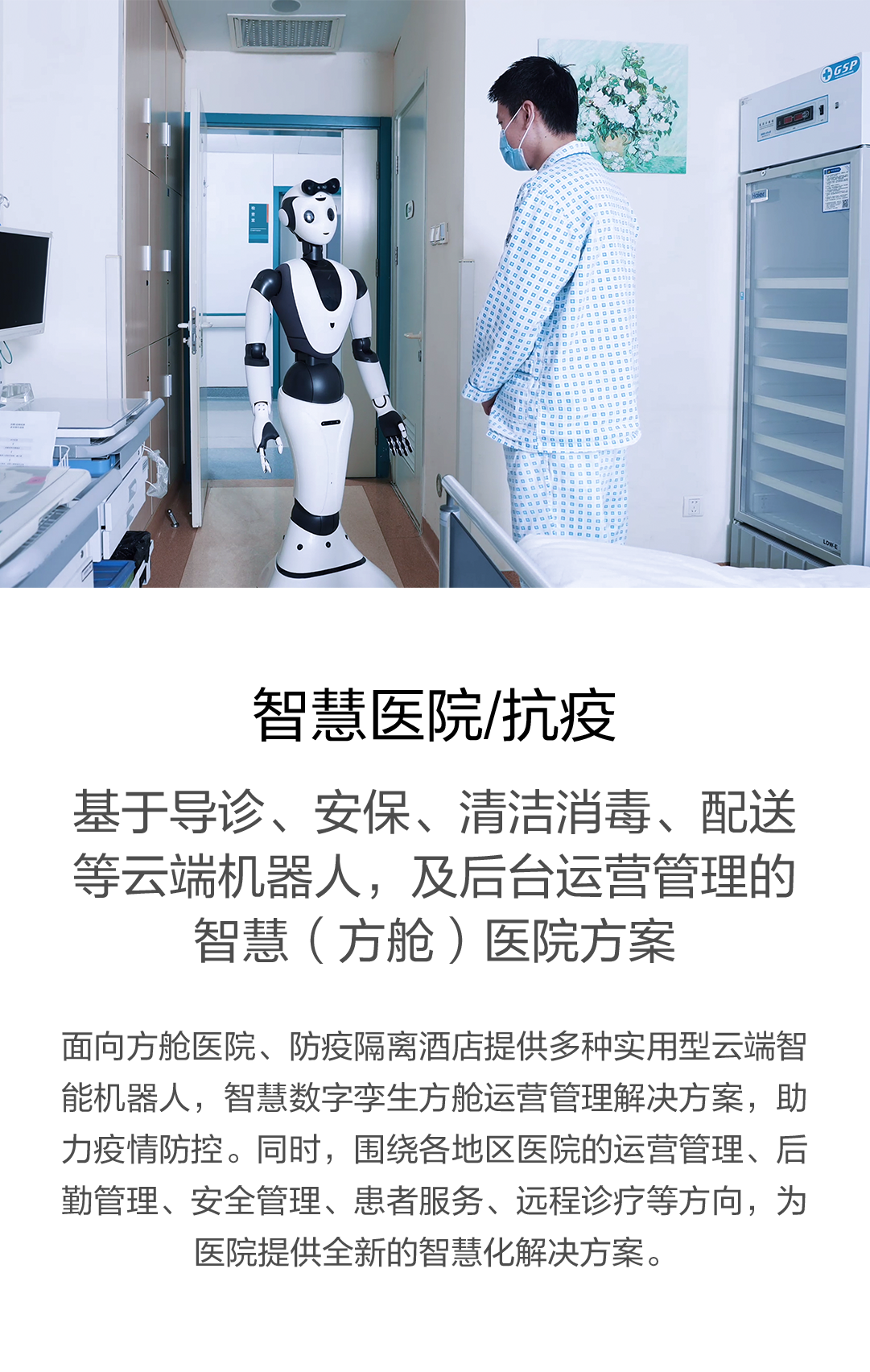 面向方艙醫(yī)院、防疫隔離酒店提供多種實(shí)用型云端智能機(jī)器人,智慧數(shù)字孿生