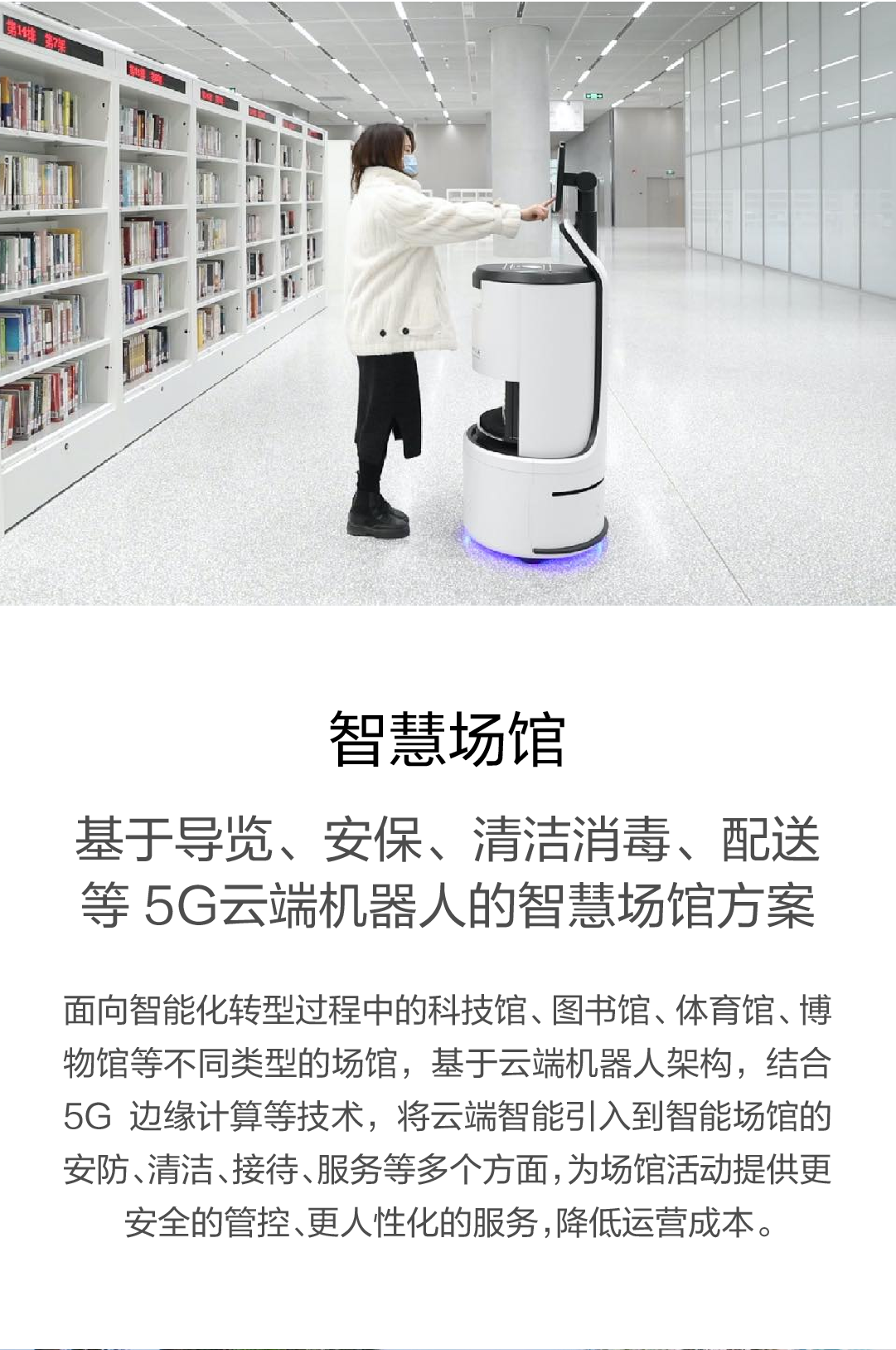 基于導(dǎo)覽、安保、清潔消毒、配送等 5G云端機(jī)器人的智慧場館方案